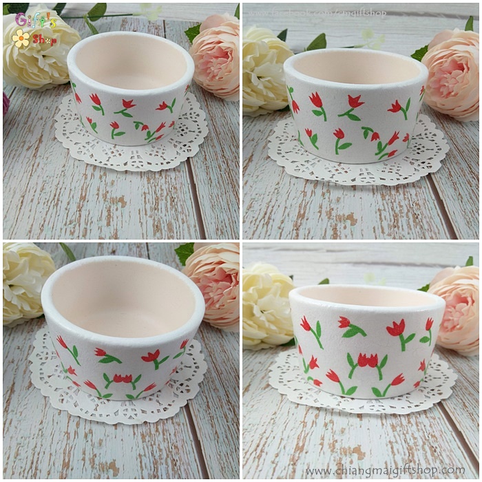 - จานรองแก้ว ทำจากดินเผาสีขาวนวลธรรมชาติ