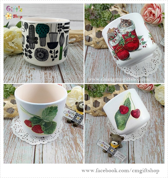 - จานรองแก้ว ทำจากดินเผาสีขาวนวลธรรมชาติ